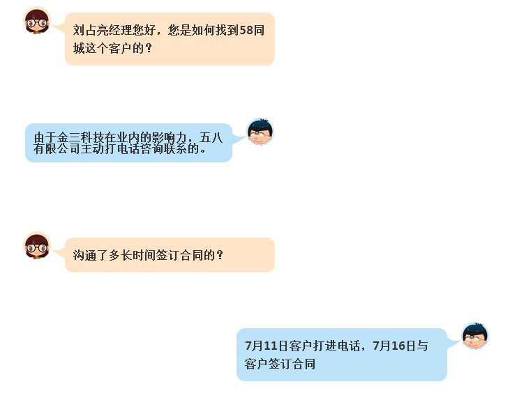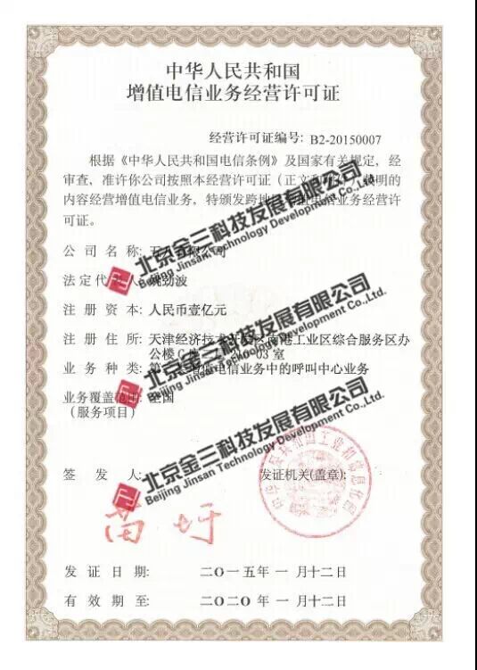 2015年1月份经过几个月的努力,五八有限公司(58同城100%控股公司)增值电信业务经营许可证正式获得工信部批复,在金三科技的帮助下,58同城正式踏入增值电信行业。在这几个月里付出最多的是金三科技的精英们和58同城的领导们。下面我们采访一下刘占亮经理为大家解密一下金三是如何为58这个大客户服务的。